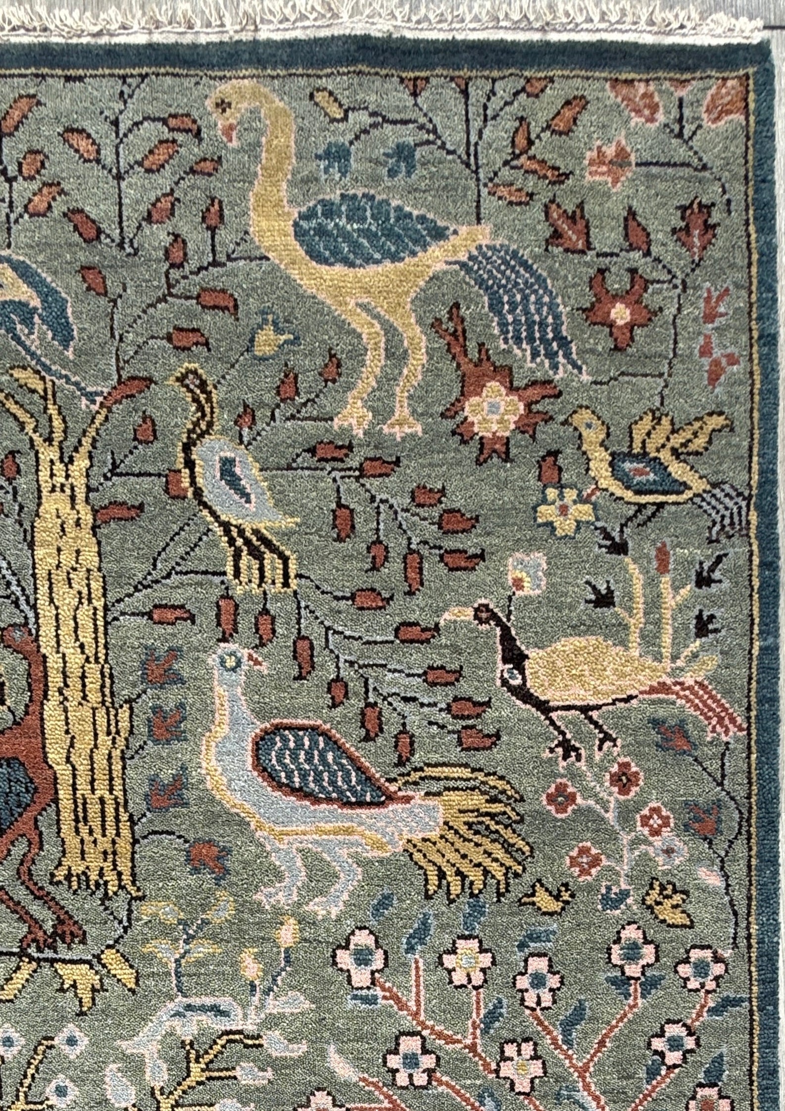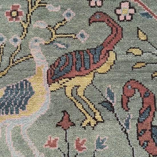 Turkish Oushak Rug 4x6 ft – Tree of Life Birds Design, Wool Area Rug